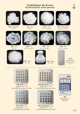 Tropfenf‰nger f¸r Kerzen Wachsbuchstaben/-zahlen/-pl‰ttchen