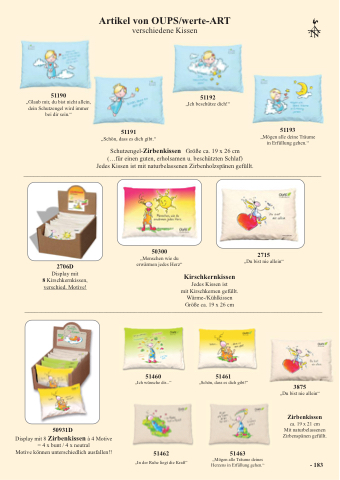 Display mit 8 Zirbenkissen ‡ 4 Motive = 4 x bunt / 4 x neutral