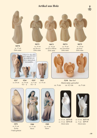 4 Engel aus Soar-Holz. Diese kˆnnen je nach Beschaffenheit des Holzes unterschied- lich ausfallen.