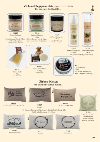 Zirben-Pflegeprodukte (aufler 51122 u. 51126) F¸r ein gutes Wohlgef¸hl....