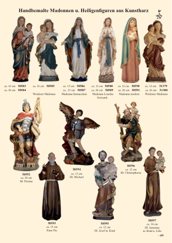 Handbemalte Madonnen u. Heiligenfiguren aus Kunstharz