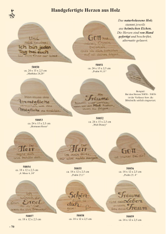 Bei den Herzen 50850 - 50856 ist der Verfasser bzw. die Bibelstelle seitlich eingraviert.