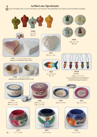 Jedes Produkt kann in Form und Farbe auf Grund der Beschaffenheit des Steines unterschiedlich ausfallen.