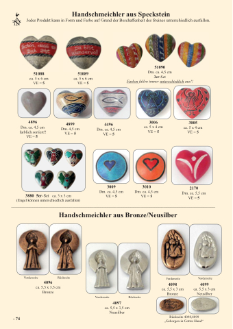 Jedes Produkt kann in Form und Farbe auf Grund der Beschaffenheit des Steines unterschiedlich ausfallen.
