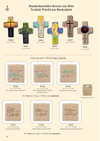 Handschmeichler-Kreuze aus Holz Teelicht-W¸rfel aus Buchenholz