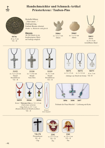 Handschmeichler und Schmuck-Artikel Priesterkreuz / Tauben-Pins