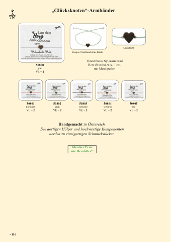 Verstellbares Nylonarmband Herz (Nussholz) ca. 1 cm, mit Metallperlen