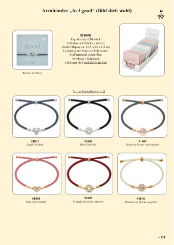 6 Motive à 4 Stück (s. unten) Größe Display ca. 16,5 x 22 x 8,8 cm Lieferung auf Karte im Polybeutel. Stoffarmband verstellbar. Symbole = Edelstahl Anhänger sind nickelallergiefrei!