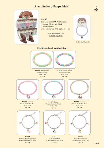 Holz-Display mit 60 Armbändern 10 versch. Motive à 6 Stück
