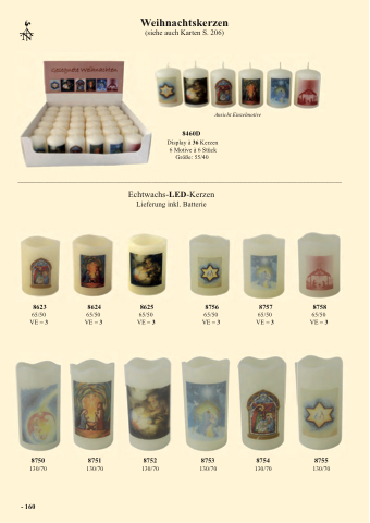 Display à 36 Kerzen 6 Motive à 6 Stück Größe: 55/40