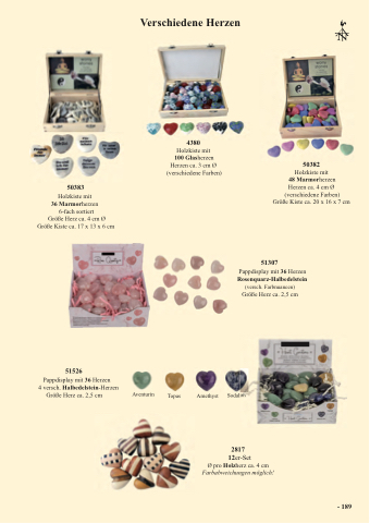 Holzkiste mit 36 Marmorherzen