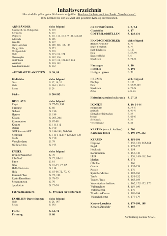 Hier sind die geläu gsten Stichworte aufgeführt. Beachten Sie bitte auch den Punkt „Verschiedenes“. Bitte nehmen Sie sich die Zeit, den gesamten Katalog durchzusehen.