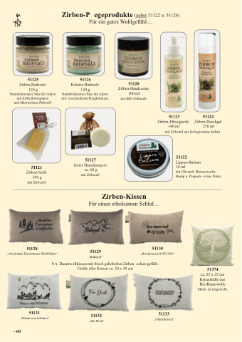Zirben-P egeprodukte (außer 51122 u. 51126) Für ein gutes Wohlgefühl....