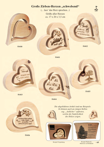 Große Zirben-Herzen „schwebend“