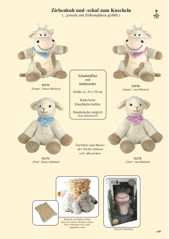 Zirbenkuh und -schaf zum Kuscheln
