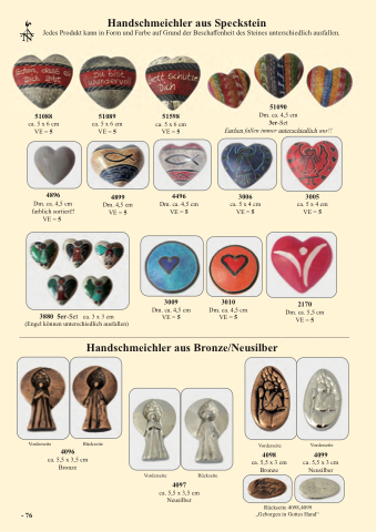 Jedes Produkt kann in Form und Farbe auf Grund der Beschaffenheit des Steines unterschiedlich ausfallen.