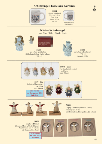 Display à 24 Stück (2 versch. Motive, 4 Schriftfarben) Pappkärtchen (ca. 10 x 7 cm) mit Holzengel (ca. 5 cm)